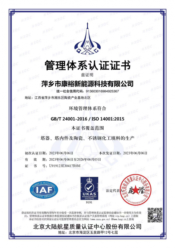萍鄉(xiāng)市康裕新能源科技有限公司于 2010 年 3 月 18 日注冊成立,位于萍鄉(xiāng)市湘東區(qū)陶瓷 產(chǎn)業(yè)基地北區(qū),注冊資金為人民幣一億零八百萬元整。公司擁有標(biāo)準(zhǔn)廠房 36000 多平方米, 固定資產(chǎn)八千萬元,年產(chǎn)值 1.5 億元。專業(yè)為各大型石油化工企業(yè)提供塔盤、填料、塔內(nèi)構(gòu)件、玻璃鋼設(shè)備及非標(biāo)壓力容器等設(shè)備。 公司已通過 ISO9001 國際質(zhì)量體系認(rèn)證,并具備二三類壓力容器的設(shè)計(jì)、二三類壓力容器制造資質(zhì)。此外,公司已成為中石化、中石油、中海油、神華集團(tuán)以及中國化工集團(tuán)的資源市場成員。